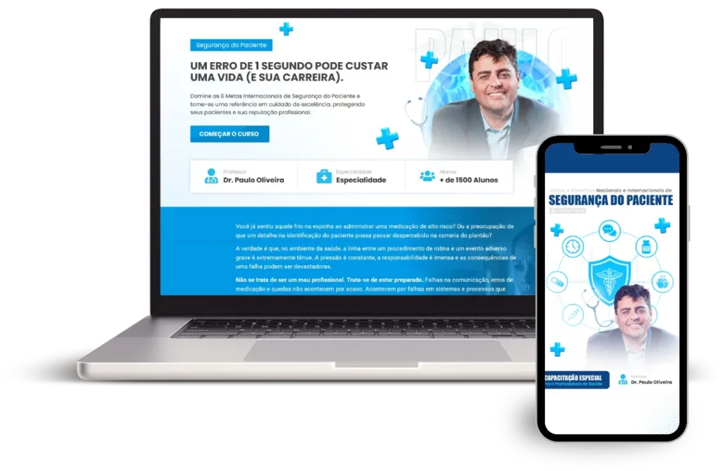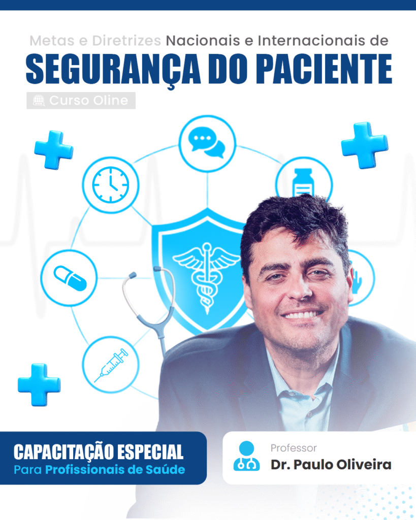 Apresentamos o curso Metas e Diretrizes Nacionais e Internacionais de Segurança do Paciente, o treinamento definitivo para profissionais de saúde que se recusam a deixar a segurança ao acaso.